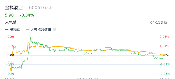 04月11日,金枫酒业收报5.90,股价涨幅-0.34%,成交金额4343.52万元,换手率1.09%。