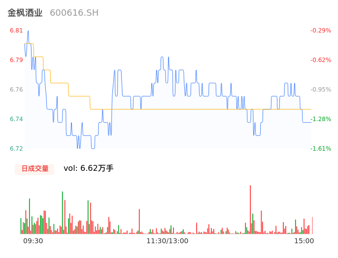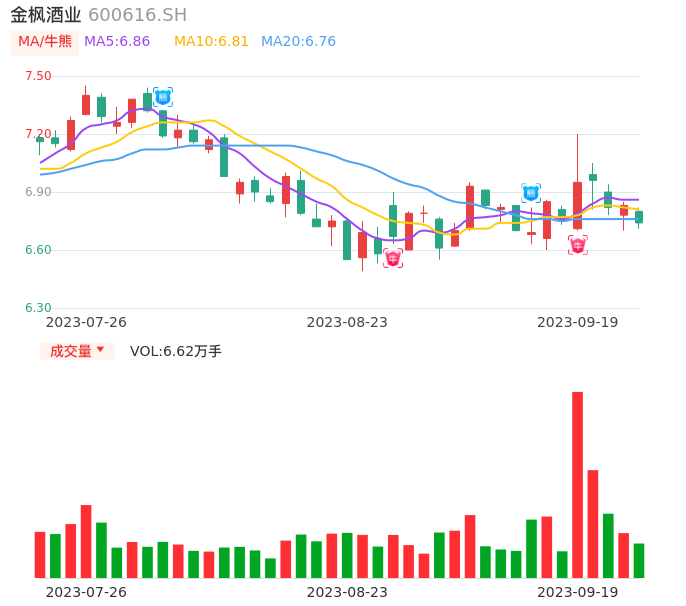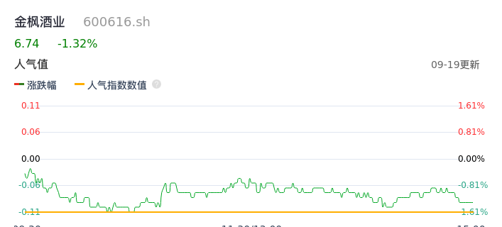 09月19日,金枫酒业收报6.74,股价涨幅-1.32%,成交金额4472.34万元,换手率0.99%。