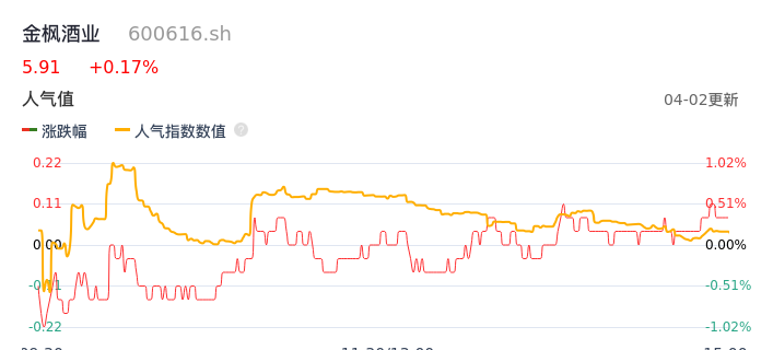 04月02日,金枫酒业收报5.91,股价涨幅0.17%,成交金额4632.87万元,换手率1.17%。