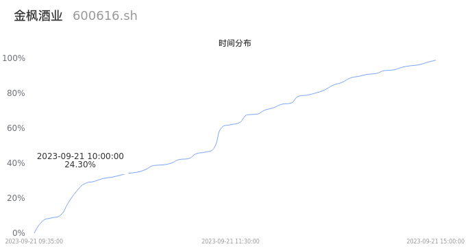 600616金枫酒业2023年09月21日成交8.82万手,成交金额5843.24万元,相较昨日放量1.70万手,换手率1.32%,成交清淡。