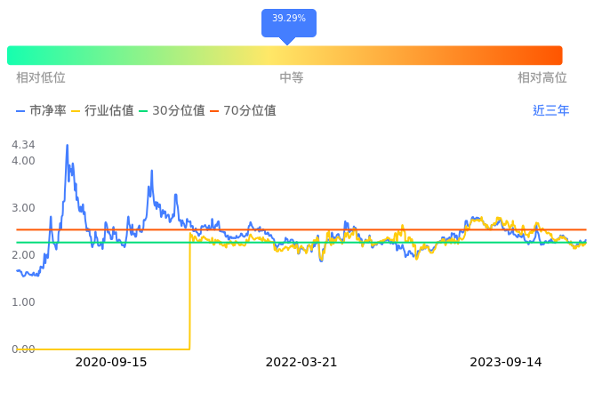 金枫酒业当前市净率PB为2.32,在所属的非白酒中,市净率PB排8,前五名分别为会稽山市净率1.56、古越龙山市净率1.69、*ST莫高市净率1.89、张裕A市净率1.97、珠江啤酒市净率2.03。金枫酒业当前市净率PB为2.32,超过近3年39.29%的历史数据。