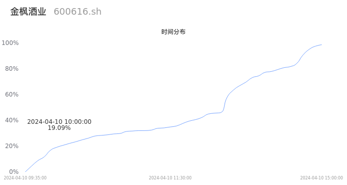 600616金枫酒业2024年04月10日成交8.95万手,成交金额5247.79万元,相较昨日放量4.41万手,换手率1.34%,成交清淡。