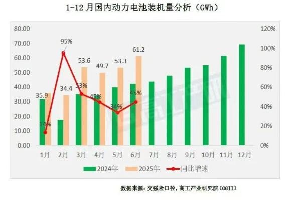 高工产业研究院(GGII)根据新能源汽车交强险口径数据统计显示,2025年上半年我国新能源汽车销售约567.4辆,同比增长33%;动力电池装机量约288.1GWh,同比增长44%。