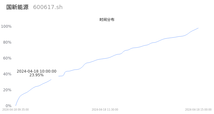 600617国新能源2024年04月18日成交10.43万手,成交金额3388.15万元,相较昨日缩量4423手,换手率0.82%,成交清淡。