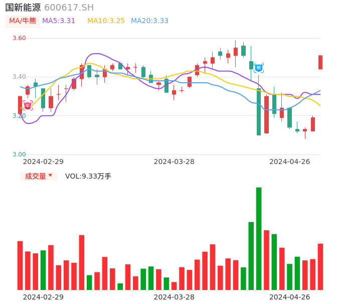 04月26日,国新能源收报3.51,股价涨幅10.03%,成交金额3269.01万元,换手率0.74%。