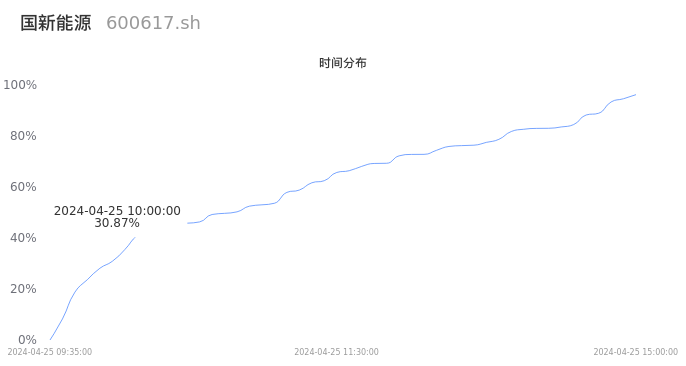 600617国新能源2024年04月25日成交7.55万手,成交金额2395.91万元,相较昨日放量1481手,换手率0.60%,成交清淡。