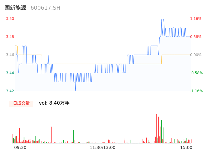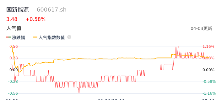 04月03日,国新能源收报3.48,股价涨幅0.58%,成交金额2908.61万元,换手率0.66%。
