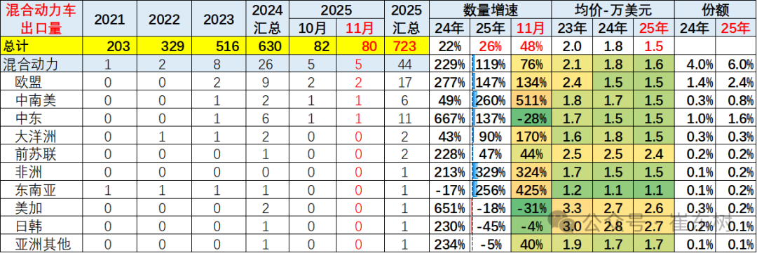 今年混合动力车型对欧洲和中南美的增量超强,体现了中国乘用车竞争力的全面提升。前苏联地区的混合动力表现较强。