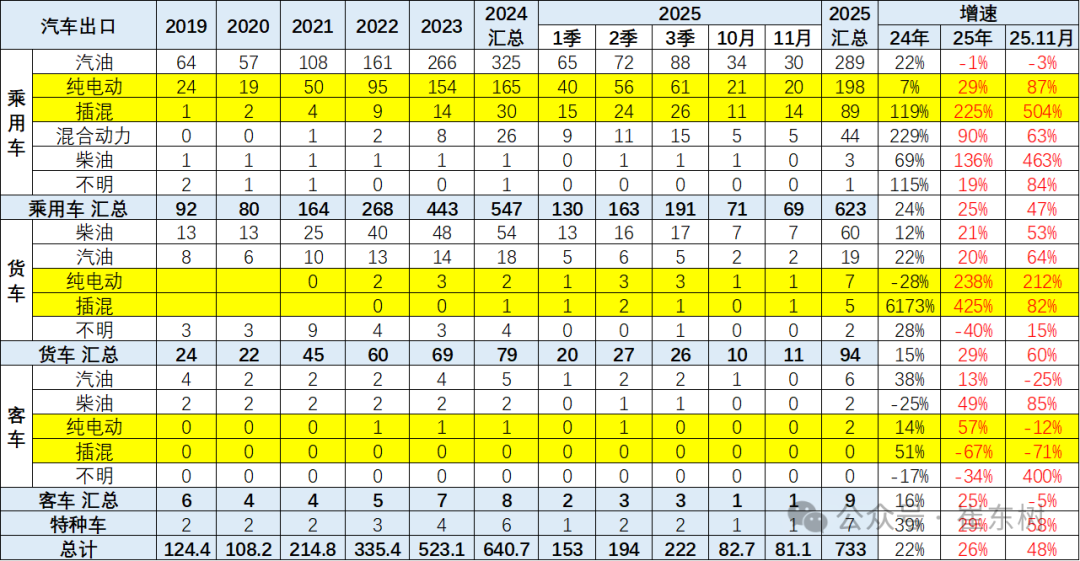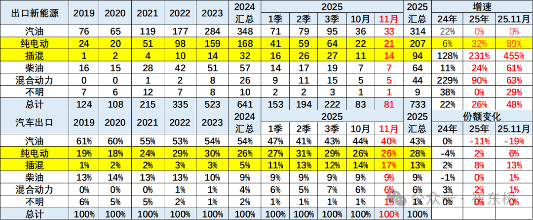今年1月新能源车出口暴增的走势超强,2-3月低迷,4-11月新能源出口持续历史高位,奠定了2025年的持续增长基础。