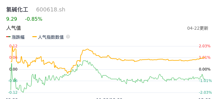 04月22日,氯碱化工收报9.29,股价涨幅-0.85%,成交金额8481.35万元,换手率1.22%。