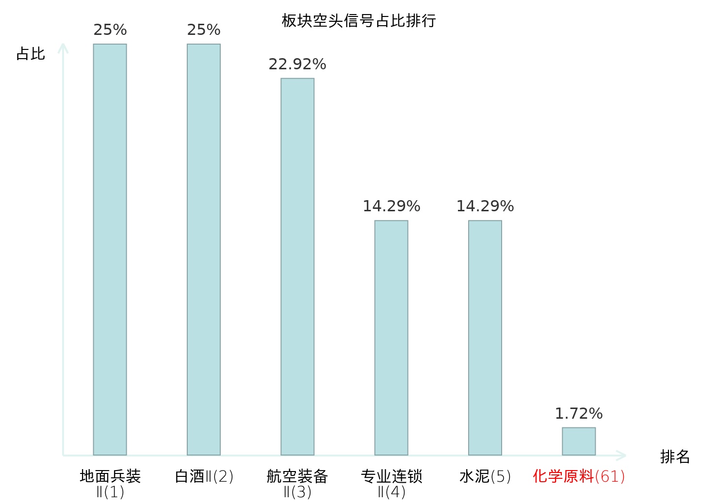 全市场所有行业板块中主力空头信号占比排名中,地面兵装Ⅱ板块位居第一。航空装备Ⅱ板块名次提升最快,较昨日上升115位。