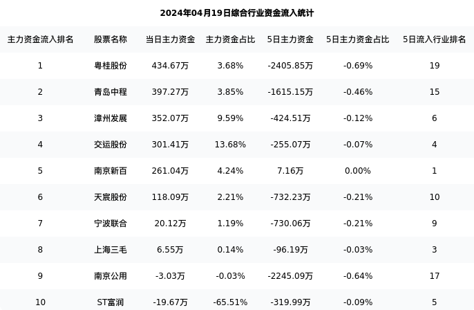 从主力资金流向来看,综合行业今日主力资金流入1.90亿元,在所有申万二级行业中排名:26/131。