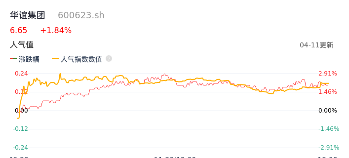 04月11日,华谊集团收报6.65,股价涨幅1.84%,成交金额1.10亿元,换手率0.89%。