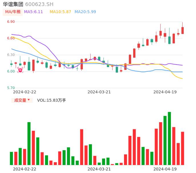 04月19日,华谊集团收报6.80,股价涨幅1.64%,成交金额1.08亿元,换手率0.85%。