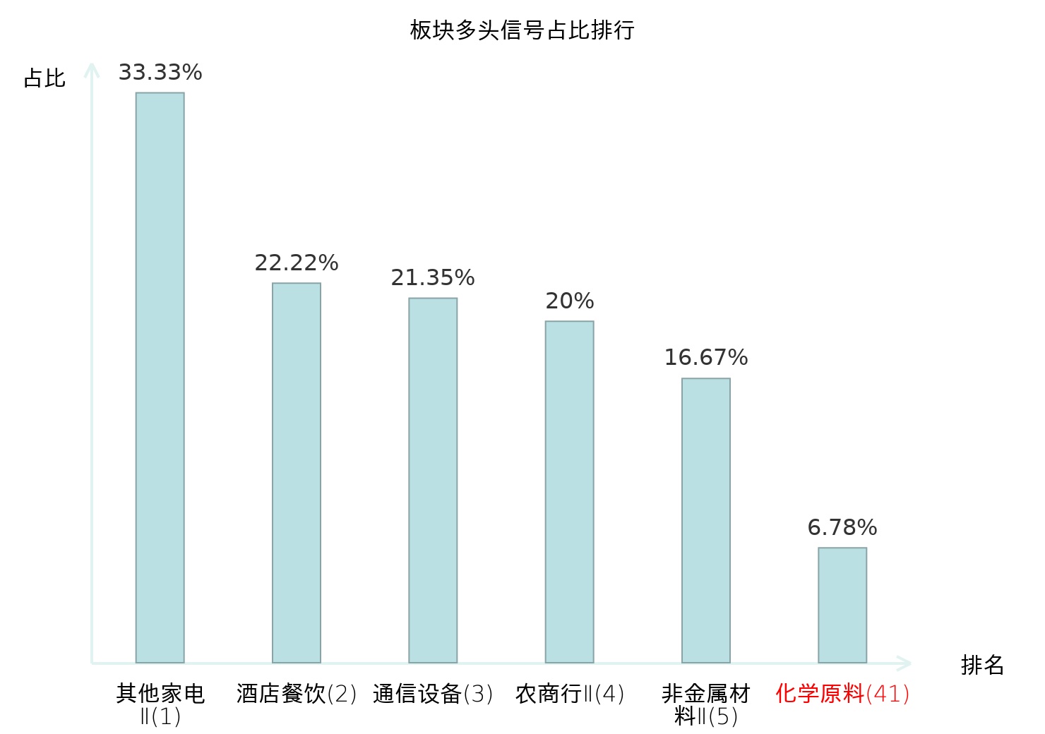 全市场所有行业板块中主力多头信号占比排名中,其他家电Ⅱ板块位居第一。其他家电Ⅱ板块名次提升最快,较昨日上升128位。