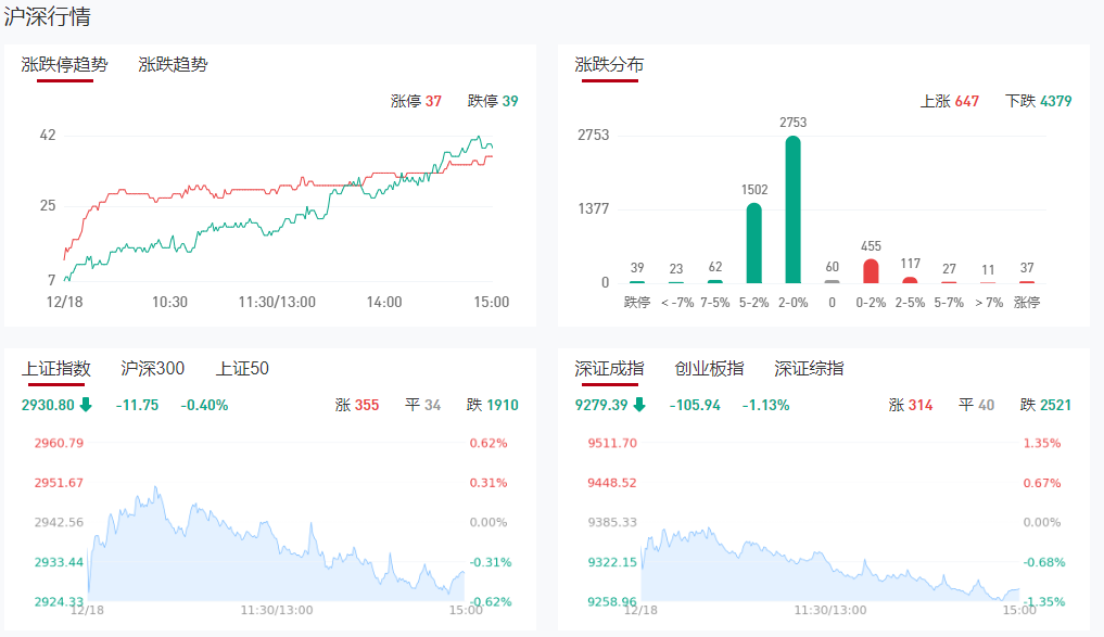 大盘全天震荡下跌,深成指、创业板指盘中均再创年内新低。截至收盘,沪指跌0.4%,深成指跌1.13%,创业板指跌1.54%。总体上个股跌多涨少,全市场超4300只个股下跌。沪深两市今日成交额6926亿,较上个交易日缩量406亿,成交金额跌破7000亿。