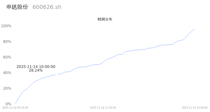 600626申达股份2025年11月14日成交15.37万手,成交金额7770.61万,相较昨日缩量2.97万手,换手率1.39%,成交清淡。