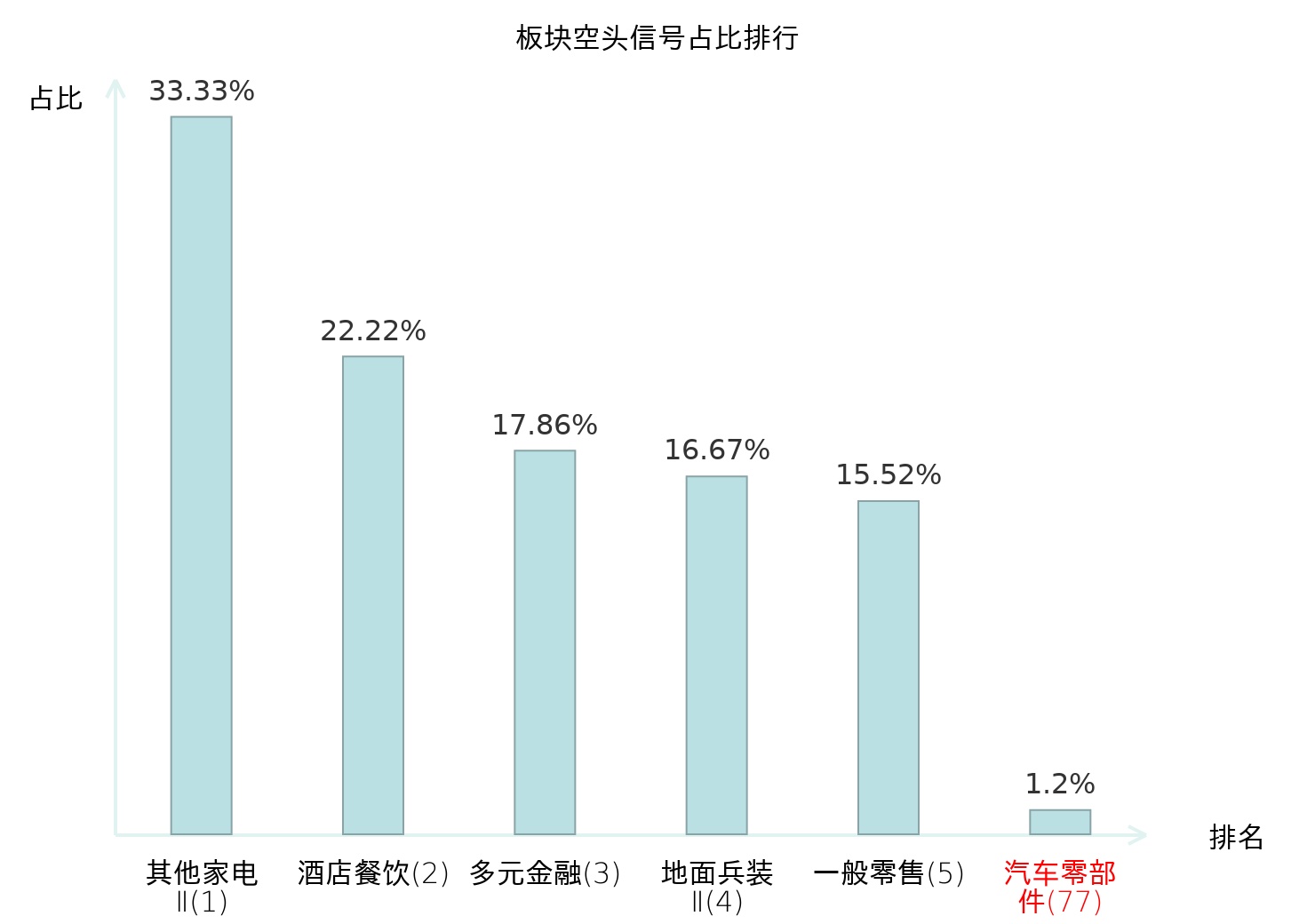 全市场所有行业板块中主力空头信号占比排名中,其他家电Ⅱ板块位居第一。广告营销板块名次提升最快,较昨日上升111位。