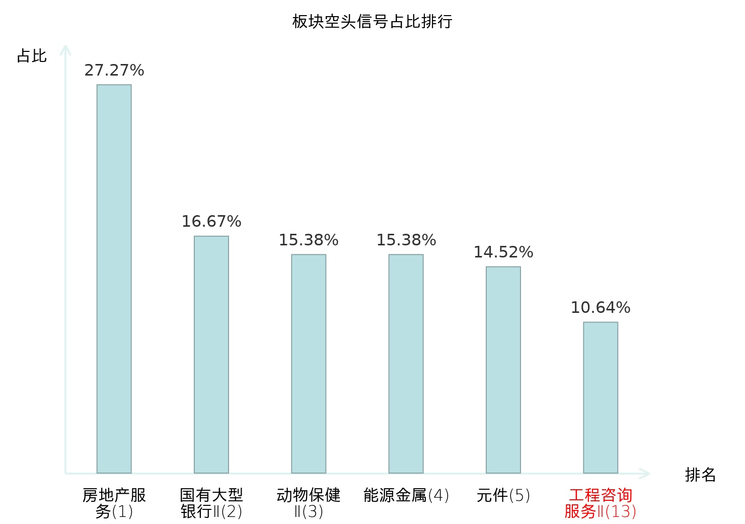 全市场所有行业板块中主力空头信号占比排名中,房地产服务板块位居第一。元件板块名次提升最快,较昨日上升122位。