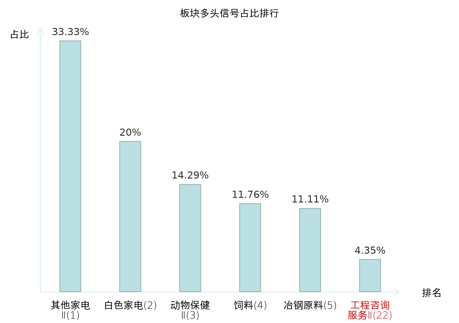 全市场所有行业板块中主力多头信号占比排名中,其他家电Ⅱ板块位居第一。其他家电Ⅱ板块名次提升最快,较昨日上升128位。