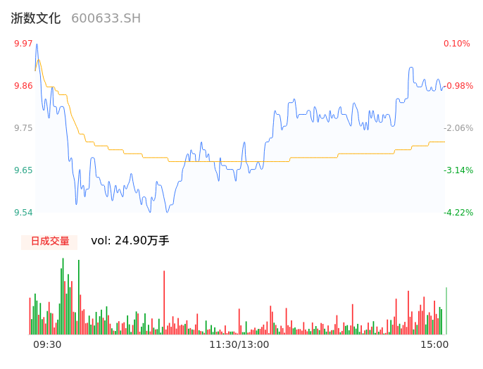 04月16日,浙数文化收报9.85,股价涨幅-1.10%,成交金额2.42亿元,换手率1.97%。