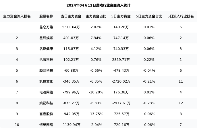 从主力资金流向来看,游戏行业今日主力资金流入25.34亿元,在所有申万二级行业中排名:124/131。