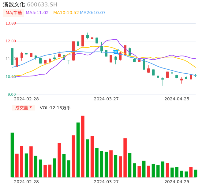 04月25日,浙数文化收报10.06,股价涨幅-0.69%,成交金额1.22亿元,换手率0.96%。