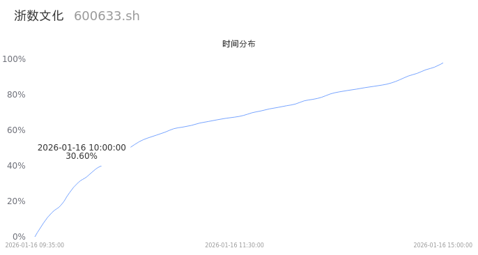 600633浙数文化2026年01月16日成交85.92万手,成交金额13.48亿,相较昨日缩量31.99万手,换手率6.78%,成交清淡。