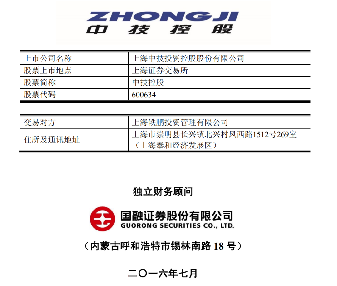 而国融证券参与“中技系”的资本局,则是在2016年。在2016年7月,国融证券作为独立财务顾问,操刀了中技控股(现*ST富控)的重大资产出售暨关联交易。在该次交易中,中技控股将其持有的94.49%中技桩业以24.16亿元的对价转出,转让方为实控人颜静刚控制的中技集团全资子公司。也即,在完成借壳上市后,中技控股即将核心资产转出。