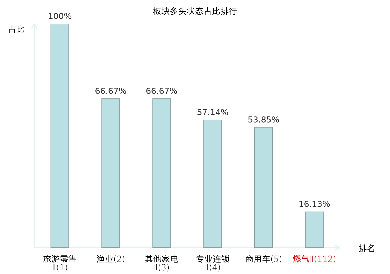 全市场所有行业板块中主力多头状态占比排名中,旅游零售Ⅱ板块位居第一。农产品加工板块名次提升最快,较昨日上升46位。