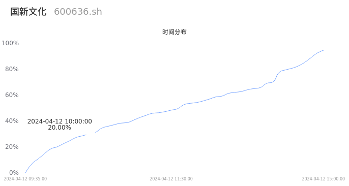 600636国新文化2024年04月12日成交5.87万手,成交金额5900.14万元,相较昨日缩量1.16万手,换手率1.34%,成交清淡。