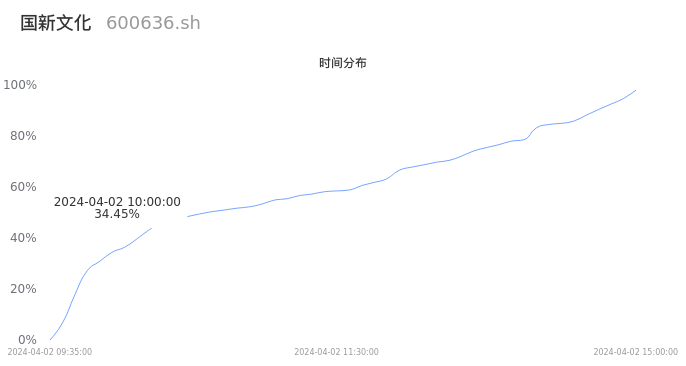 600636国新文化2024年04月02日成交13.23万手,成交金额1.47亿元,相较昨日放量2.87万手,换手率3.02%,成交清淡。