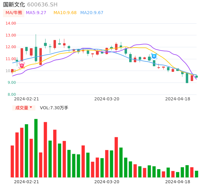 04月18日,国新文化收报9.44,股价涨幅-1.77%,成交金额6965.04万元,换手率1.66%。