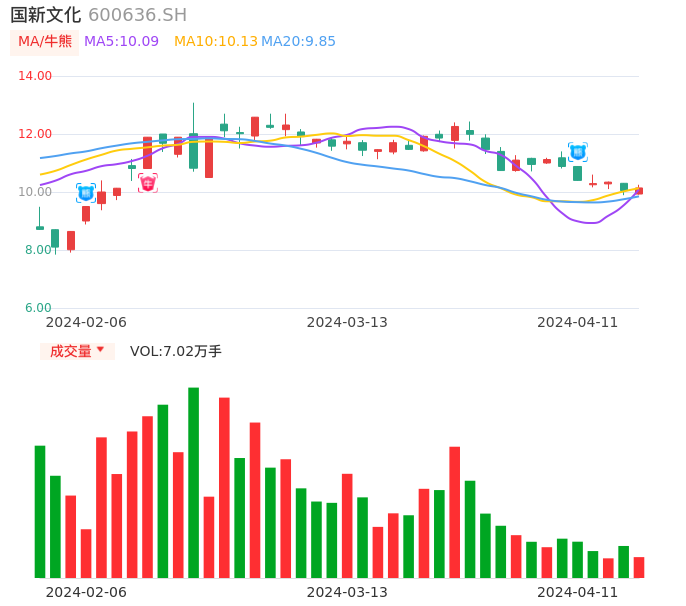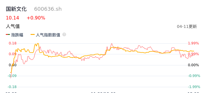 04月11日,国新文化收报10.14,股价涨幅0.90%,成交金额7124.98万元,换手率1.60%。