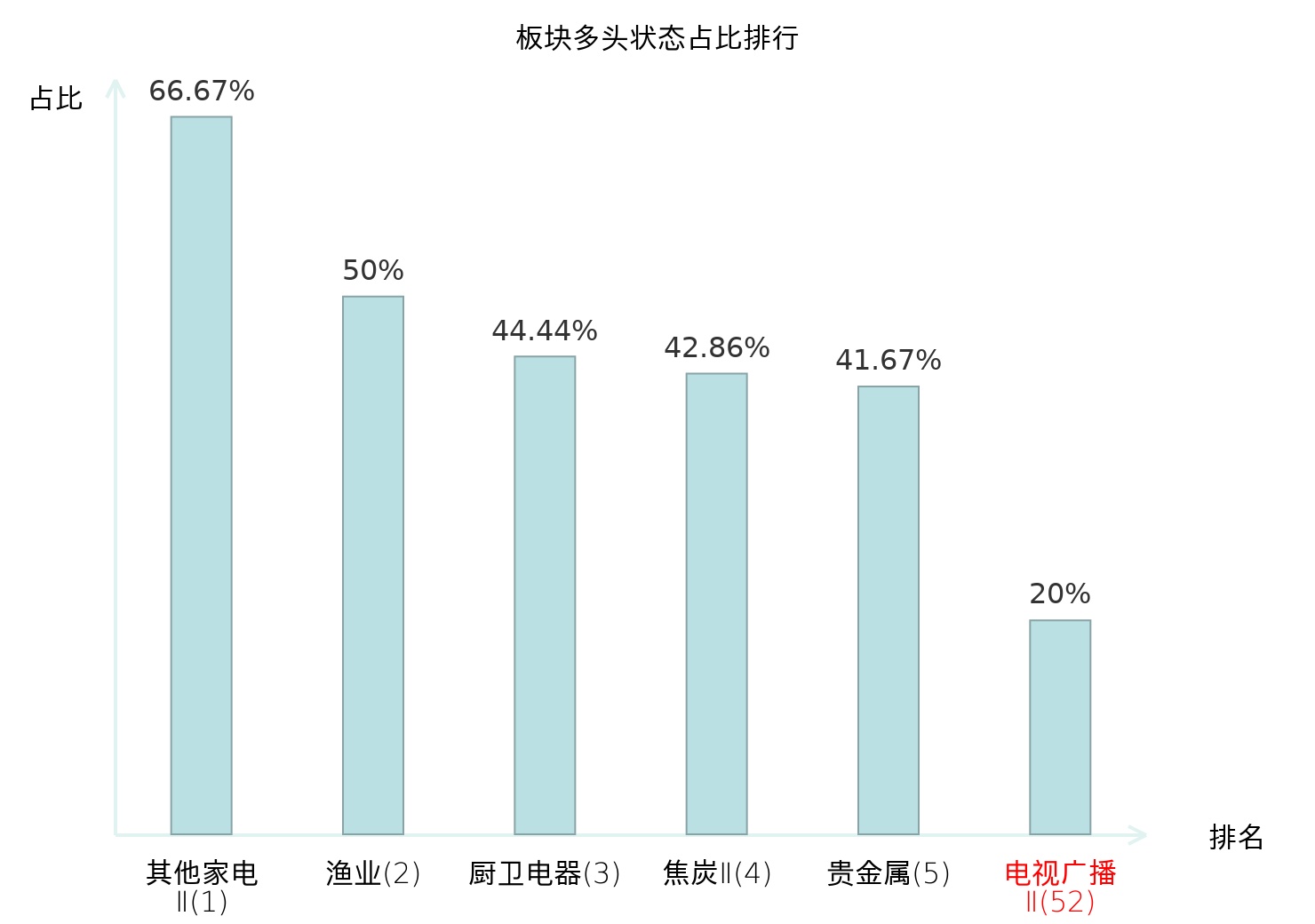 全市场所有行业板块中主力多头状态占比排名中,其他家电Ⅱ板块位居第一。乘用车板块名次提升最快,较昨日上升82位。