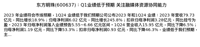 值得注意的是:2024年04月中金公司的张雪晴/焦杉分析师,首次发布关于东方明珠的研究报告,标题为:东方明珠(600637):Q1业绩低于预期 关注融媒体资源协同能力。