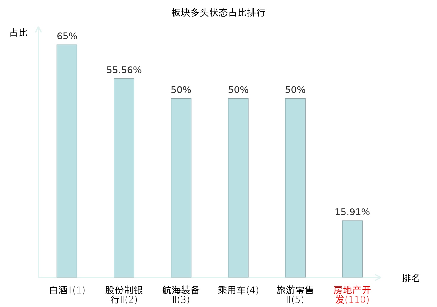 全市场所有行业板块中主力多头状态占比排名中,白酒Ⅱ板块位居第一。其他家电Ⅱ板块名次提升最快,较昨日上升93位。
