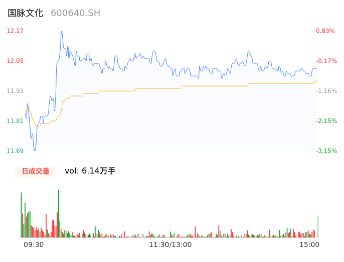 04月22日,国脉文化收报12.00,股价涨幅-0.58%,成交金额7344.71万元,换手率0.77%。