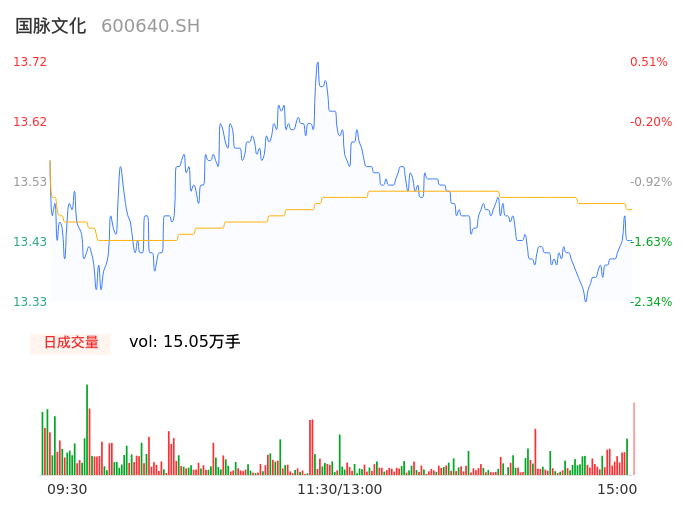 04月02日,国脉文化收报13.43,股价涨幅-1.61%,成交金额2.03亿元,换手率1.89%。