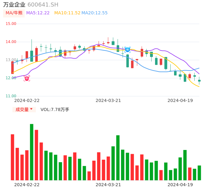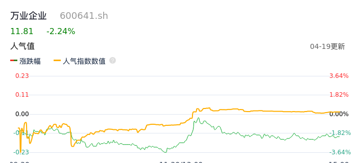 04月19日,万业企业收报11.81,股价涨幅-2.24%,成交金额9201.39万元,换手率0.84%。
