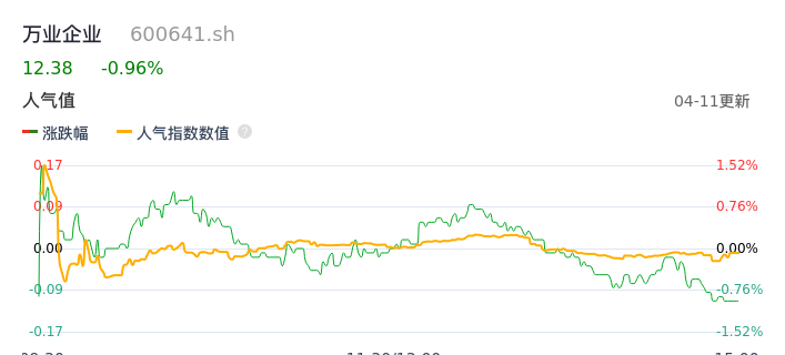 04月11日,万业企业收报12.38,股价涨幅-0.96%,成交金额7890.02万元,换手率0.68%。
