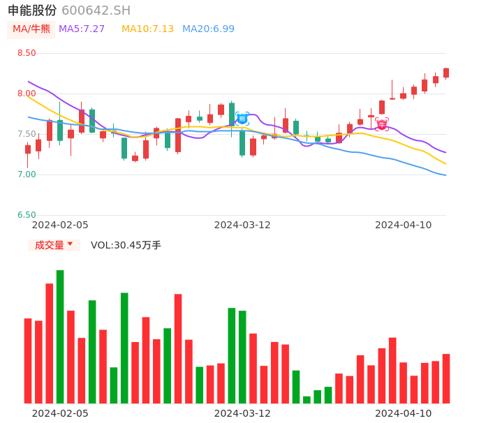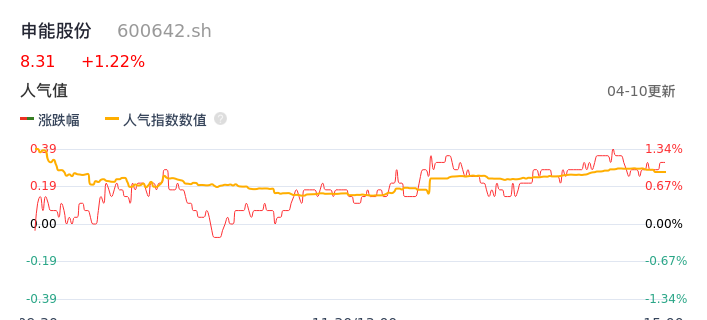 04月10日,申能股份收报8.31,股价涨幅1.22%,成交金额2.52亿元,换手率0.63%。