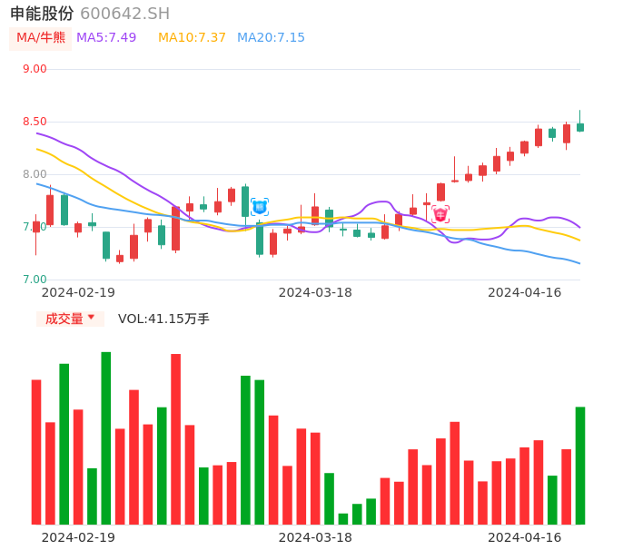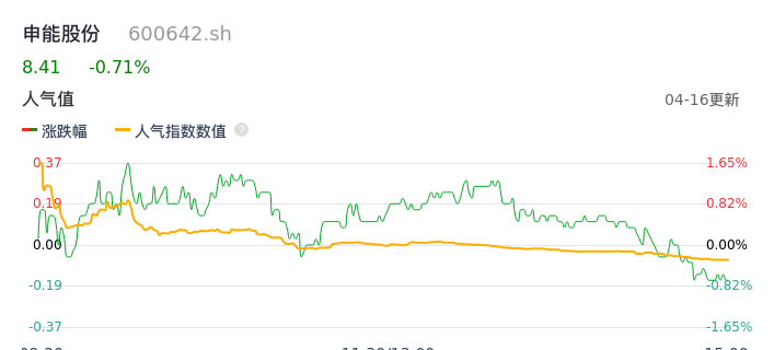 04月16日,申能股份收报8.41,股价涨幅-0.71%,成交金额3.51亿元,换手率0.85%。