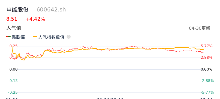 04月30日,申能股份收报8.51,股价涨幅4.42%,成交金额3.53亿元,换手率0.85%。