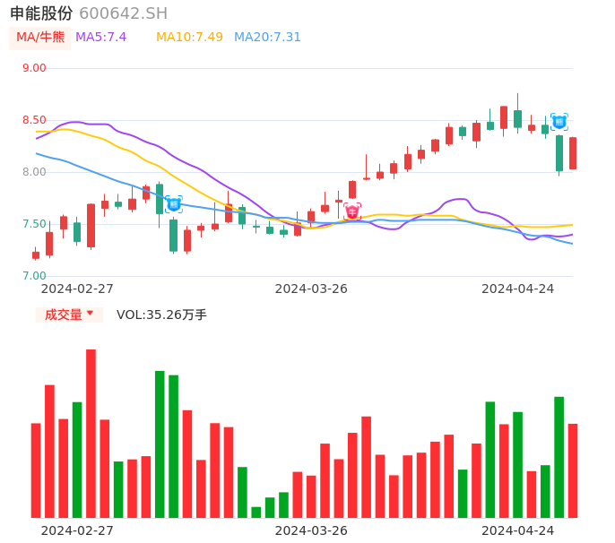04月24日,申能股份收报8.33,股价涨幅4.00%,成交金额2.91亿元,换手率0.72%。