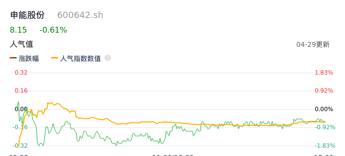 04月29日,申能股份收报8.15,股价涨幅-0.61%,成交金额2.23亿元,换手率0.57%。