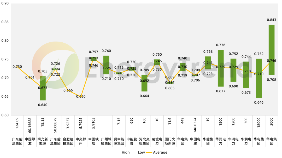 投标价格0.64-0.843元/W,TOPCon组件均价0.718元/W