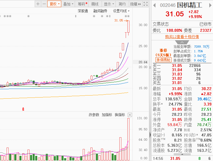 市场情绪:市场热点较为杂乱,个股跌多涨少,全市场超2800只个股下跌。今日共61股涨停,连板股总数10只,23股封板未遂,封板率为72%(不含ST股、退市股)。焦点股方面,机器人叠加商业航天概念的国机精工5连板,液冷服务器概念股日海智能4连板,新疆本地股洪通燃气4连板,电力股华光环能4连板。此外,超级水电概念股反弹,山河智能反包涨停走出15天9板。