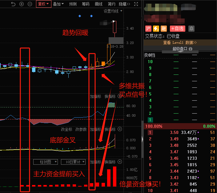 那就是主力资金早就先于个股股价上涨之前已经提前持续流入,随着各种指标信号的转暖,