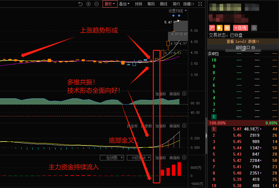 上升趋势形成,底部金叉出现,主力资金转为流入!
